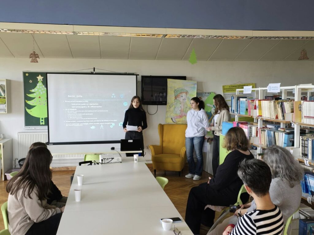 În perioada 16-20 decembrie, trei dintre colegele noastre, Dragana Kovacs, Andreea Muntean și Brigita Almași sunt într-o activitate de #JobShadowing la Osnovna škola Eugena Kumičića, în Slatina, Croația. Au participat la ore de limba engleză, arte, ore specifice învățământului primar, s-au alăturat colegilor și elevilor școlii gazdă în cadrul atelierelor axate pe sustenabilitate, observând metodele prin care incluziunea devine cheia activității cotidiene la clasă.